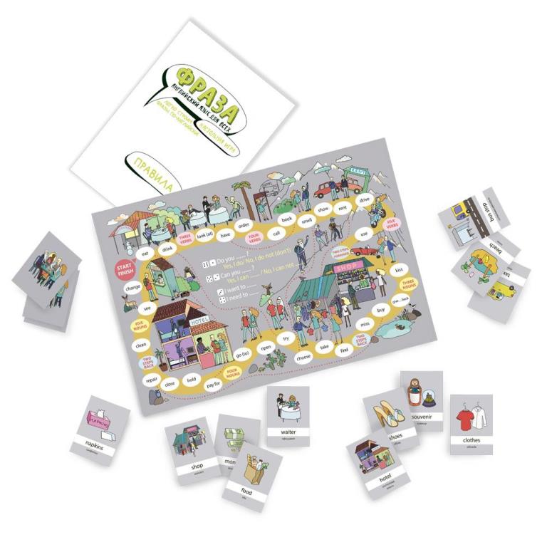 «Фраза» - настольная игра-самоучитель английского языка, которая позволяет тренировать грамматику, улучшает словарный запас и, при регулярном повторении, помогает преодолевать языковой барьер.