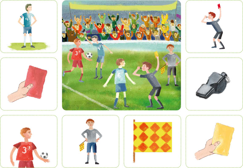 В центре больших карт помещена сюжетная картинка, вокруг которой расположены изображения предметов или людей, относящихся к этой картинке.